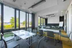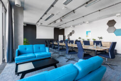 Światło dzienne (panoramiczne okna) oraz możliwość pełnego zaciemnienia pomieszczeń